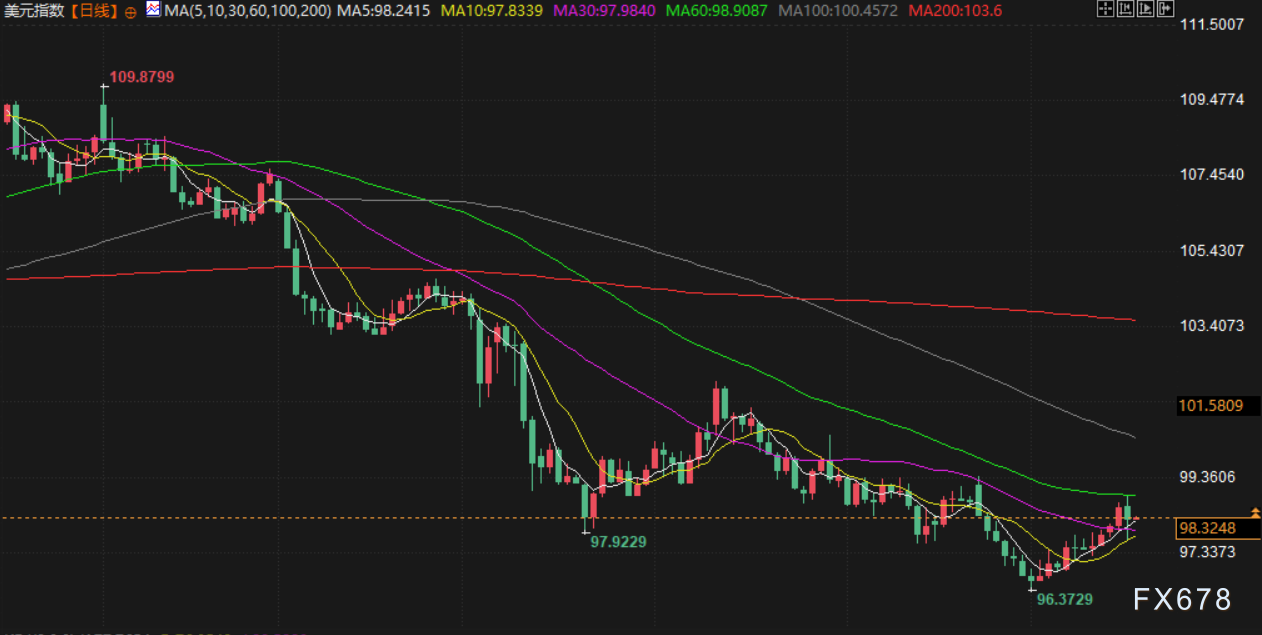 衡量美元兑一篮子货币汇率的美元指数尾盘下跌0.25%,报98.34;欧元上涨0.3%,报1.1633美元。