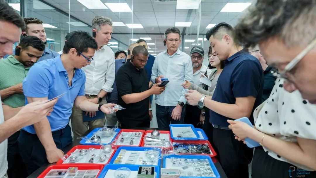 参加2025上海铂金周的25位国际贵金属行业高管深入深圳水贝考察中国铂金产业。