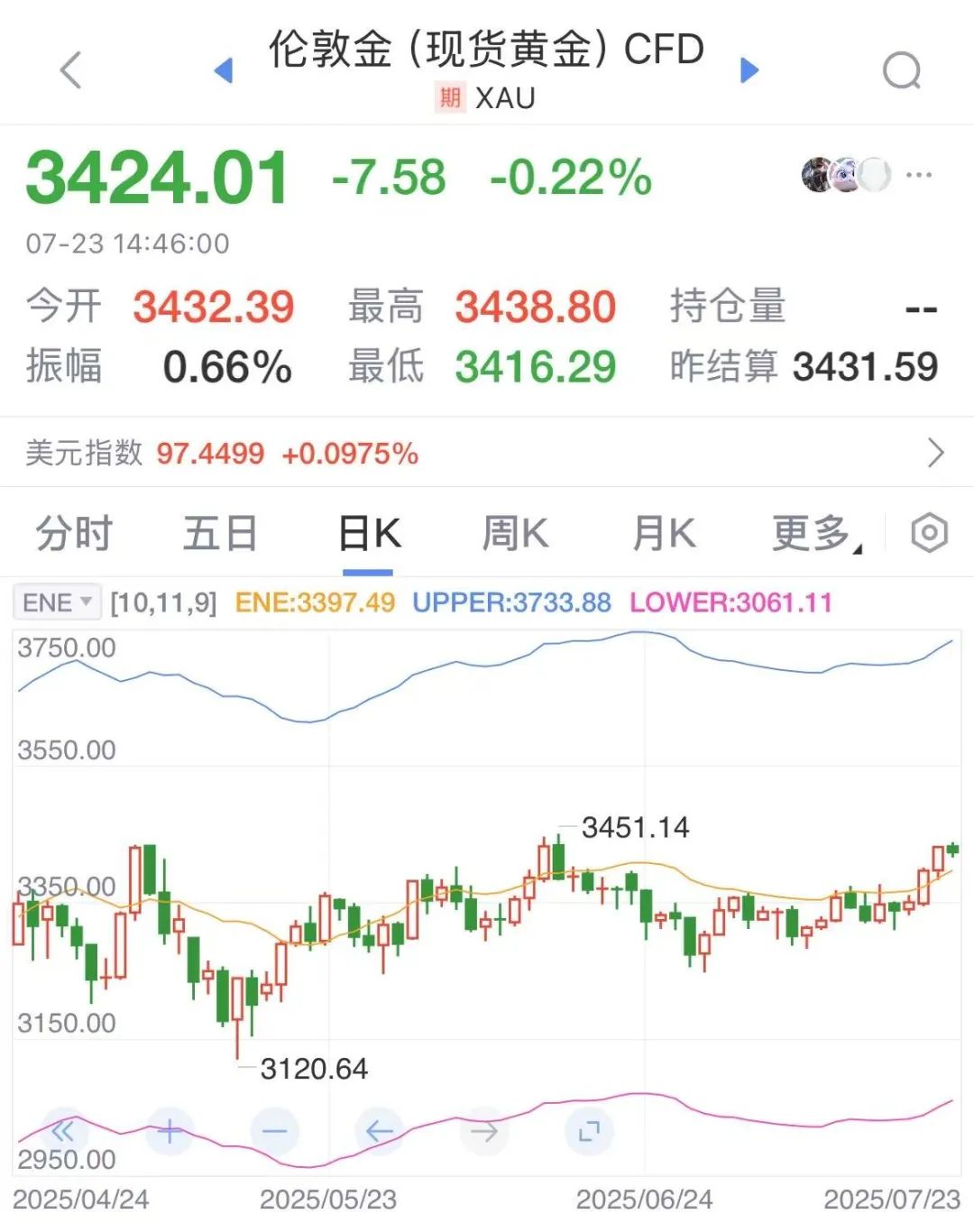 临近8月1日的关税谈判期限,仍有不少国家没有与美国达成贸易协议,特朗普任何关税威胁言论都将提振对黄金的避险需求,预计短期国际金价易涨难跌,或有望再度冲击3500美元/盎司大关。