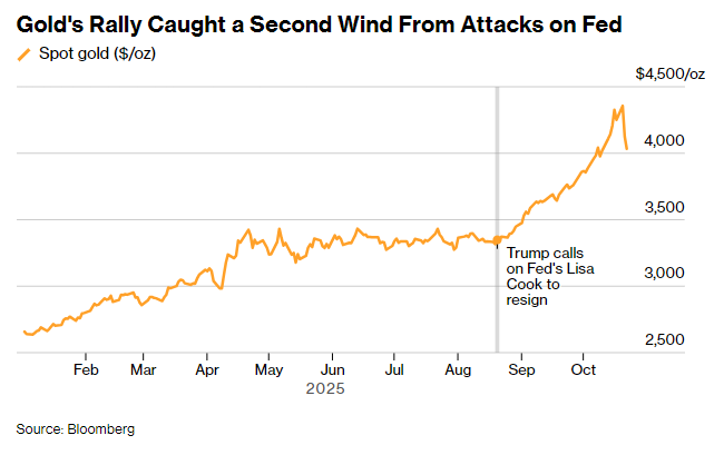 当日金价还面临多重压力:美元走强、印度节庆需求消退、中美贸易僵局现缓和迹象。但管理17亿美元对冲基金的Mount Lucas首席执行官Jerry Prior认为,黄金长期支撑“依然牢固”,他预计金价将窄幅波动,可能下探4000美元后因避险需求和经济数据重现买盘。