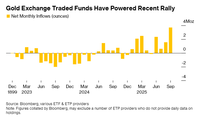 随后涌现的“主权信用贬值交易”——即因担忧货币购买力受损而抛售主权债务及其计价货币的行为——使散户在近期市场中扮演更重要角色:西方机构与个人青睐的黄金ETF资金流入激增,期权交易量同步攀升,社交媒体上金店外排长队的照片更是迅速走红。