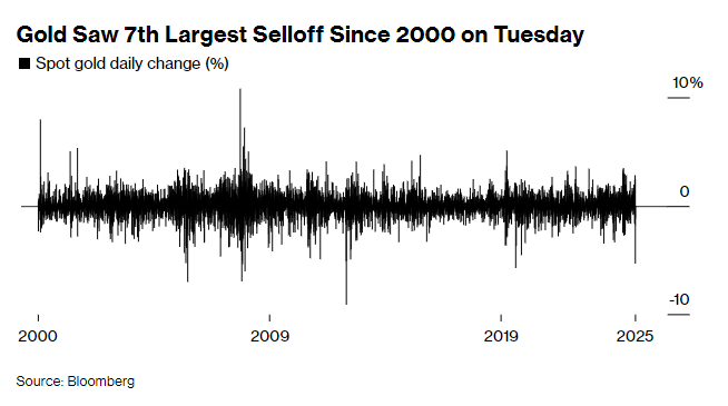 周二一系列技术指标显示过多资金在过短时间内涌入,加剧回调风险,黄金凌厉涨势戛然而止。现货黄金暴跌6.3%,创2013年以来最大跌幅。