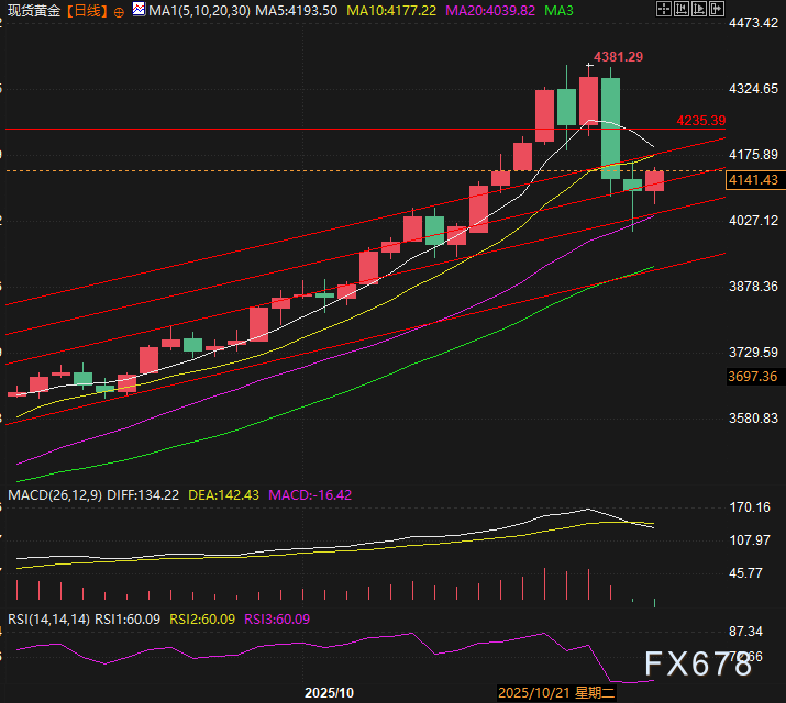 (现货黄金日线图,来源:易汇通)北京时间21:48,现货黄金现报4143美元/盎司。