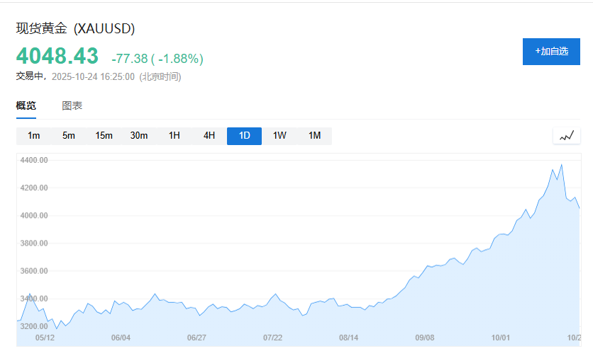 这一资金狂潮发生在黄金价格剧烈震荡之际,现货黄金周一触及每盎司4381.21美元的历史高位后急转直下,周二单日暴跌6.3%,创下2013年以来最大跌幅。尽管经历回调,金价最新报每盎司4048.43美元,今年以来涨幅仍超50%。