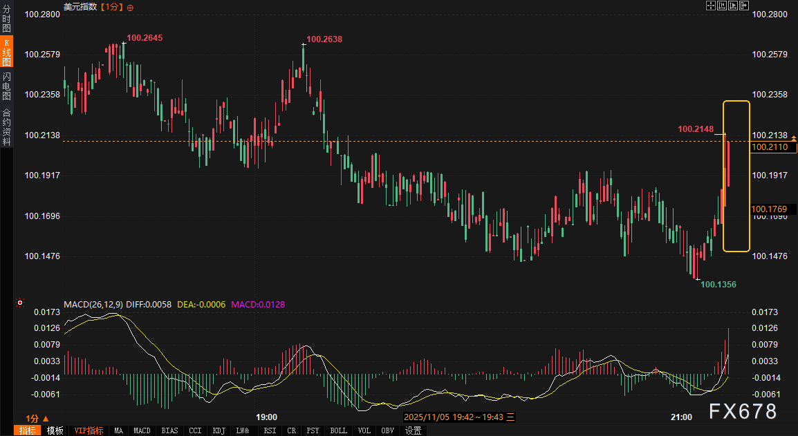 周三(11月5日)21:15公布的美国ADP就业报告显示,10月私营部门新增就业4.2万人,显著高于上月修正后的-2.9万人,也超出市场预期的3.75万人。在美国政府关门已超35天、官方就业数据延迟的背景下,这份报告备受关注。数据公布后,美股期货小幅震荡,美元与美债收益率同步走高,黄金则短线承压。