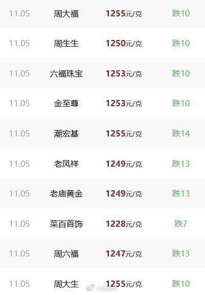 周大福等知名黄金品牌已宣布上调金价。11月3日,周大福足金首饰为1259元/克,较前一日上涨61元/克。老庙黄金、周生生等单日涨幅超过5%;中国黄金一度上调78元/克,单日涨幅超6%。部分消费者产生疑惑:“这是否由新规导致?”