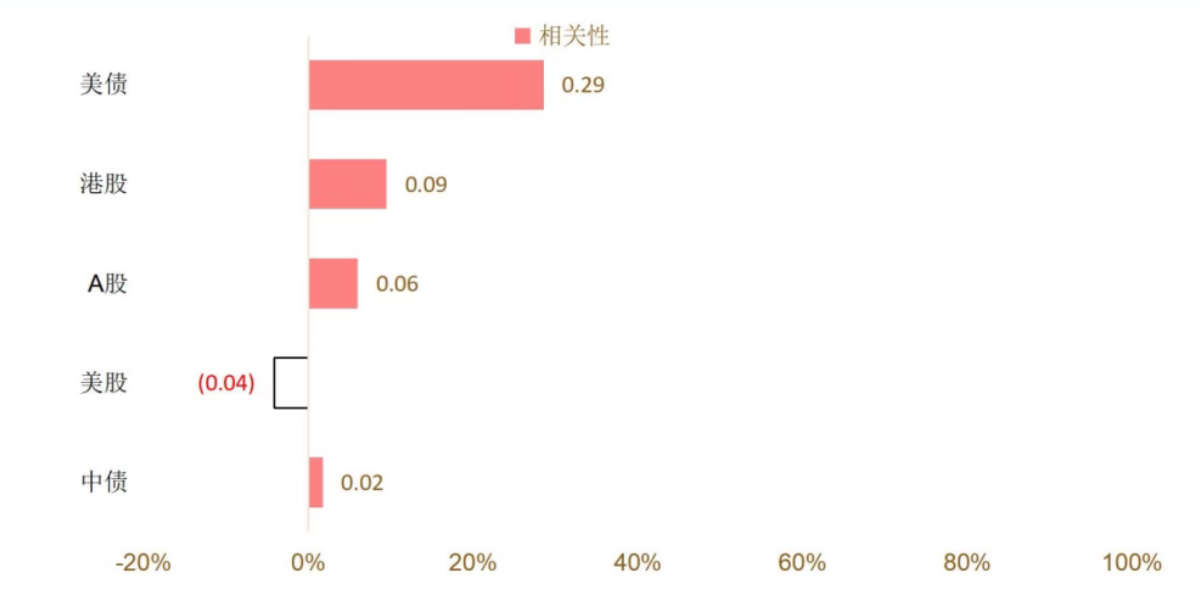 多元配置:黄金与股票、债券等传统资产的相关性较低,这意味着在市场剧烈波动时,它能较为有效地对冲其他资产的下跌风险。其独特的风险收益特征,也决定了黄金在多数市场周期中,大概率都能起到优化投资组合风险调整后回报的作用。