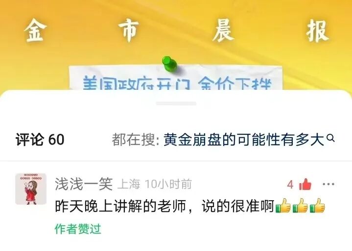 关于年底前的国际金价走势,吕超认为美国政府开门后,国际金价遭遇了在直播中提示的抛售打击,自本周高点跳水近100美元,说明炒作情绪有所消退,资金出现获利离场。