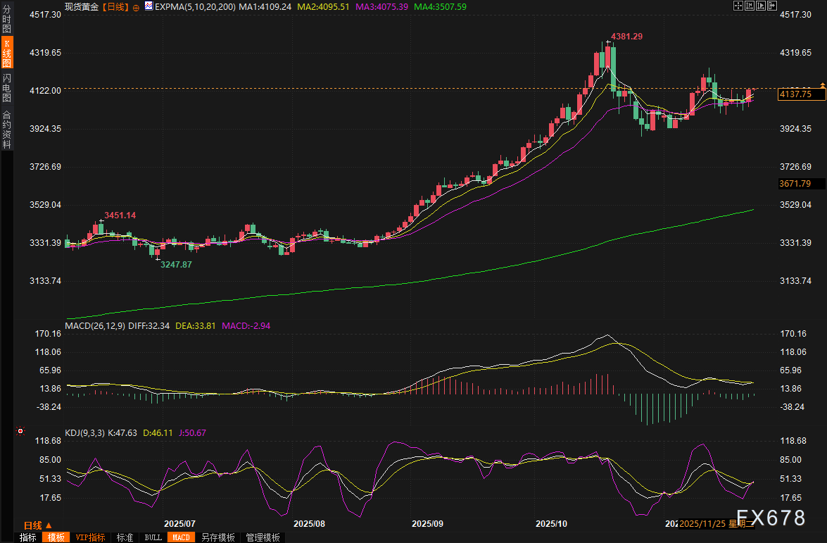 (现货黄金日线图,来源:易汇通)北京时间07:49,现货黄金现报4140.93美元/盎司。