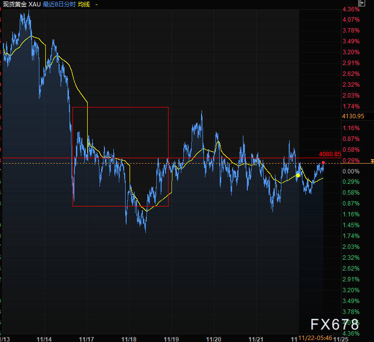 周一(11月24日)亚欧时段现货黄金继续震荡,连续三天走出小幅探底回升走势,近期金价一直在4050附近震荡,金价之所以未能选出方向,核心归因于近期多空均有重要市场因素在发挥作用,上周五美联储鸽派措辞升温、12月降息预期重燃及美元指数回调形成的支撑;与此同时,俄乌冲突缓和预期则降低了黄金的避险溢价。
