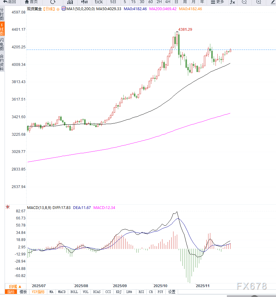美元的短线反弹与全球风险偏好改善虽然限制了金价的即时突破,但这些因素不足以改变中期结构。未来几日金价将围绕 4200 美元展开方向性选择,而此关口的突破与否,将显著影响下周乃至整个12月的走势框架。