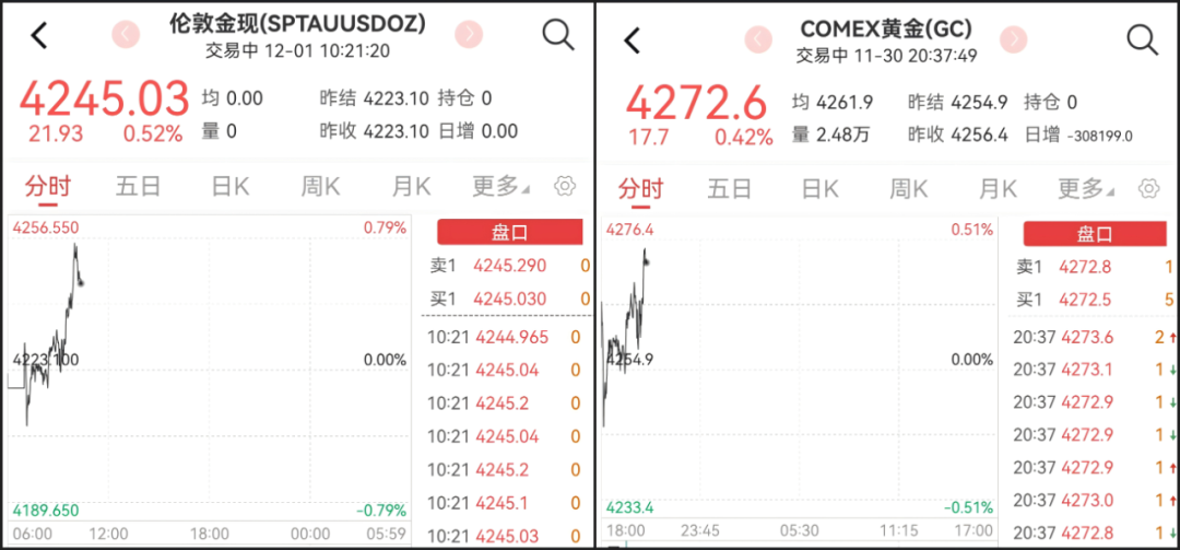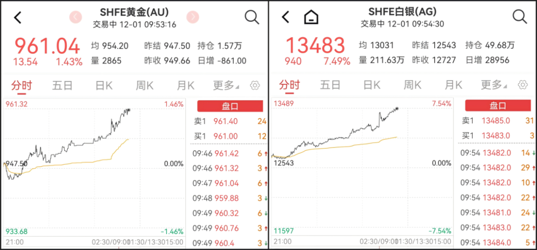 在市场上,12月1日,贵金属市场喜迎“开门红”。A股贵金属概念拉升,黄金股有色概念强势领涨,黄金有色相关ETF纷纷异动。