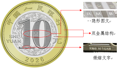 1.2026年贺岁双色铜合金纪念币公众防伪特征