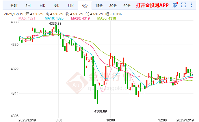 今日周五(12月19日)亚盘时段,国际金价回落至4350美元以下,延续了前一个交易日的震荡整理态势。此次回调主要由于短期合约中的获利回吐和多头头寸减少,而非出现显著的趋势性抛售压力。在连续创下新高之后,部分投资者选择暂时离场观望,导致金价短期内承受一定压力。