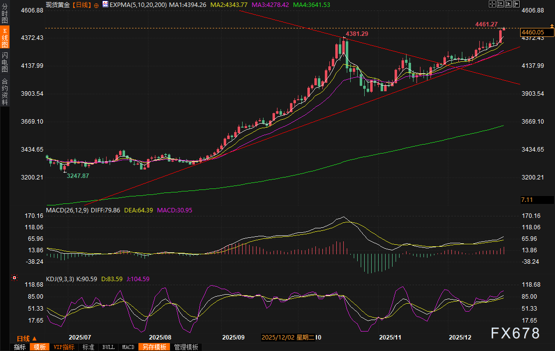 (现货黄金日线图,来源:易汇通)北京时间07:55,现货黄金现报4460.09美元/盎司。