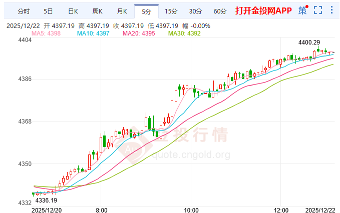 今日周一(12月22日)亚盘时段,现货黄金再度成为市场焦点!伦敦金日内强势上扬0.57%,价格一度突破4385美元/盎司大关,创下历史新高,当前报价高达44383.15美元/盎司,再次刷新年内纪录!这一波汹涌的金价涨势,让屏幕前的投资者们热血沸腾,心中满是疑问:这轮金价究竟能攀升到何种高度?