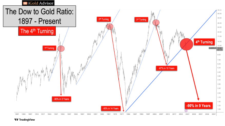 黄金投资者须知:道指黄金比率的第四次重大转折已至。这一罕见、强劲且暗藏警示的信号过去130年间仅出现过三次,如今再度降临。