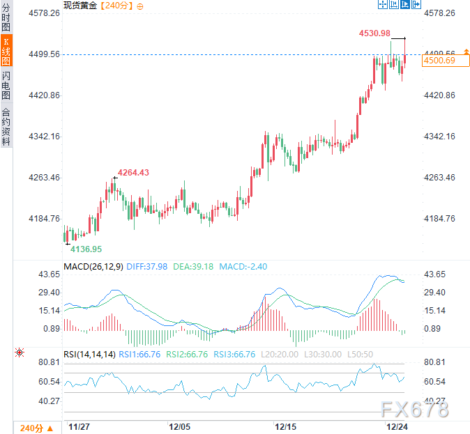 此次尼日利亚军事打击事件,是一起典型的“战术性风险事件”。它为黄金市场提供了一个清晰的短期看涨理由,周五亚市时段,现货黄金小幅走强,日内涨幅约0.44%,一度达到4530.98美元/盎司的历史新高。