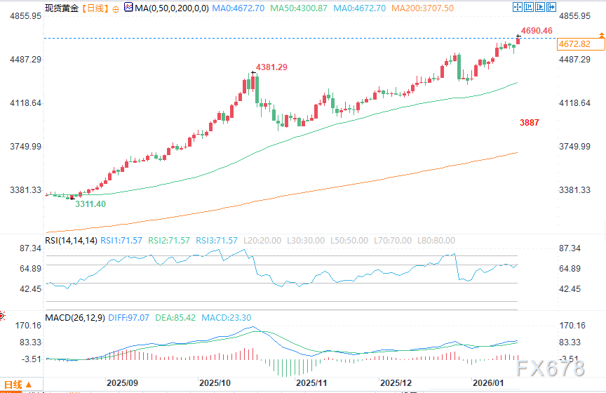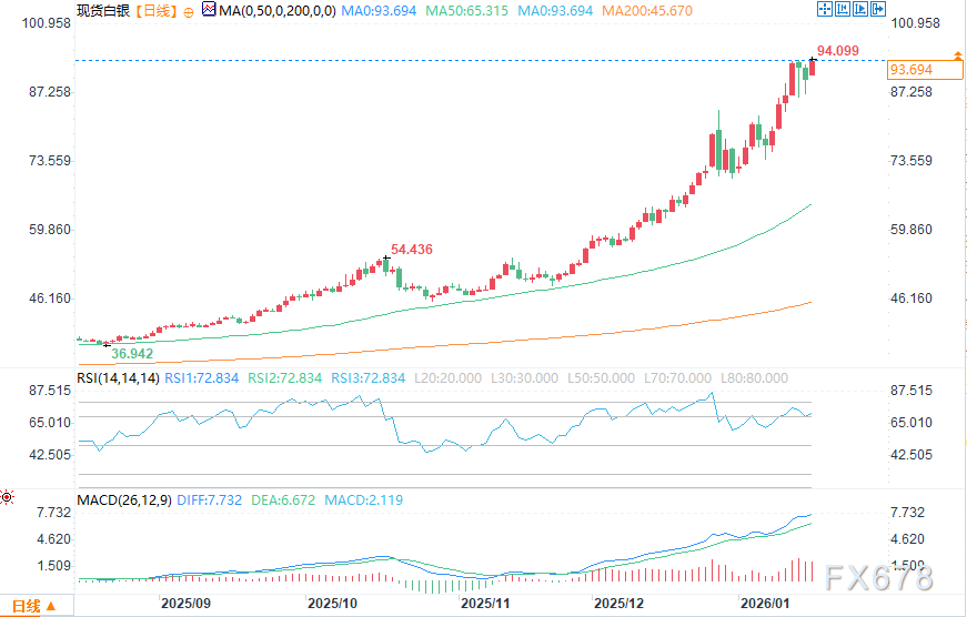 戴维·莫里森补充道:“尽管日线级别指数平滑异同移动平均线(MACD)指标显示白银已处于严重超买状态,但银价依旧维持高位,且鲜有迹象表明买家会因此却步。多头的主流观点认为,白银供应短缺,同时来自投资者和工业领域的需求依旧旺盛。与黄金一样,今日早盘美元的走弱也进一步提振了市场的看涨情绪。”