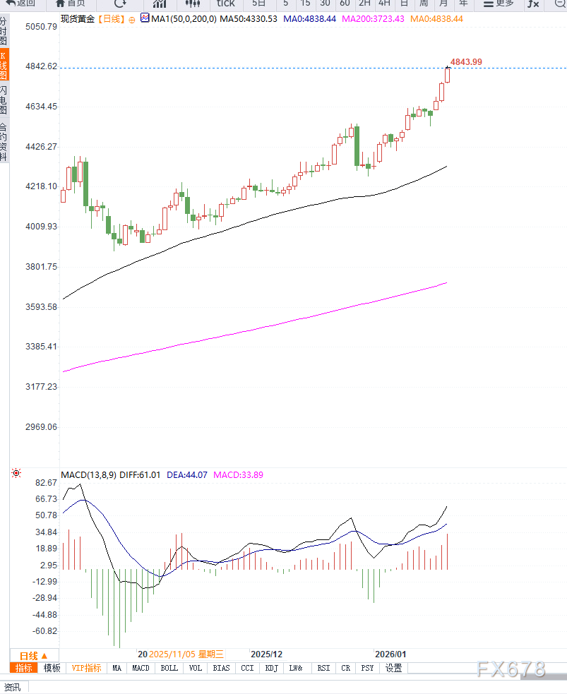 周三亚洲早盘,现货黄金(XAU/USD)一度上行至每盎司4835美元附近,延续此前强势走势,并有望再度刷新历史高位。