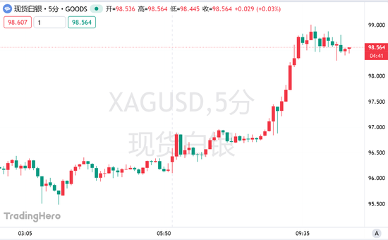 周五早盘,白银价格涨势不止,连破数个关口,现货白银盘中首次站上99美元/盎司,新年首月涨超38%,距离100美元整数大关仅一步之遥。