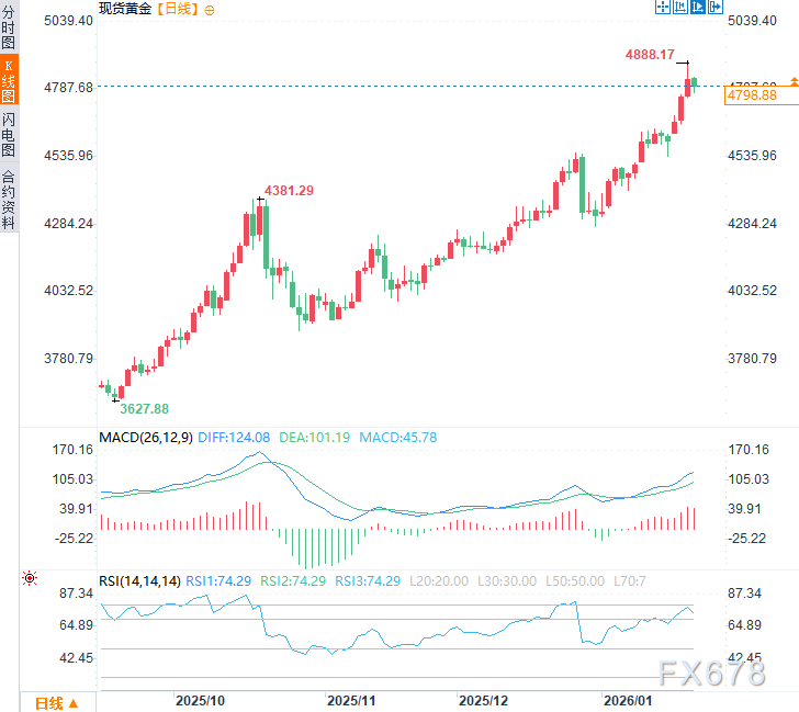 (现货黄金日线图,来源:易汇通)北京时间13:41,现货黄金现报4799.74美元/盎司。