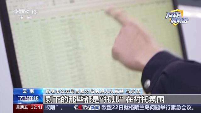 昆明市公安局官渡分局刑侦大队民警 马兴浩:一般来说他那个场景构造都是托儿,里面这些直播间人数一般都是伪造的,其实就那个直播里面就他一个观众,剩下的那些都是“托儿”在衬托氛围。